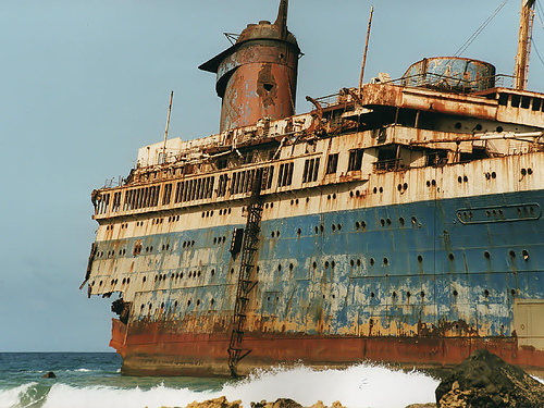 Postingan aneh tapi nyata kali ini adalah mengenai bangkai-bangkai kapal dari seluruh dunia yang bisa jadi pemandangan yang menakutkan sekaligus indah dan menakjubkan. Lihatlah sosok-sosok kapal karam ini sebelum mereka pelan-pelan lenyap diterjang gelombang samudera.Dahulu, kapal-kapal ini demikian gagah dan cantik, siap mengarungi samudera manapun. Dan sekarang mereka seperti rumah hantu di perairan pantai dengan "kesedihan" sekaligus kecantikan dalam arti yang lain:
